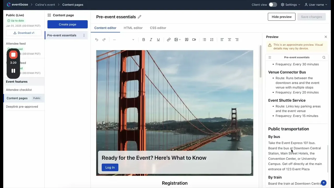 Creating custom event content used to require code skills and cross-device checks. I introduced reusable templates and in-context preview so that orgnizers could publish content confidently without technical skills.